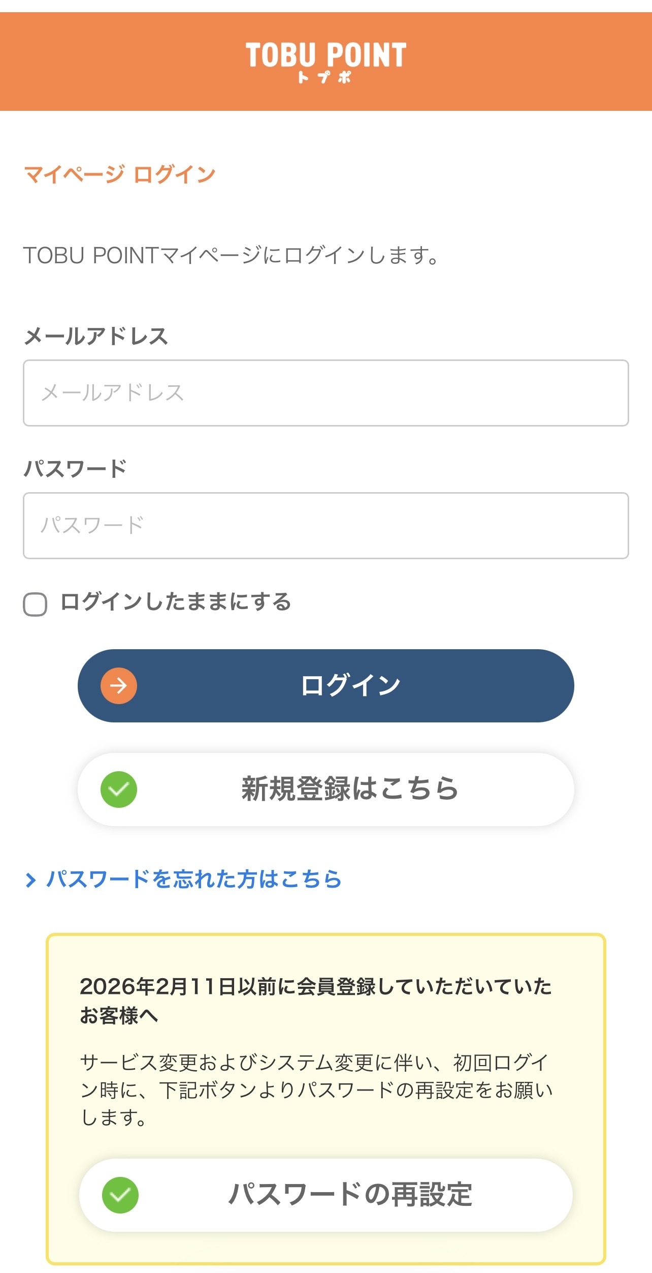 【重要】TOBU POINTアプリのログイン時におけるパスワード再設定について