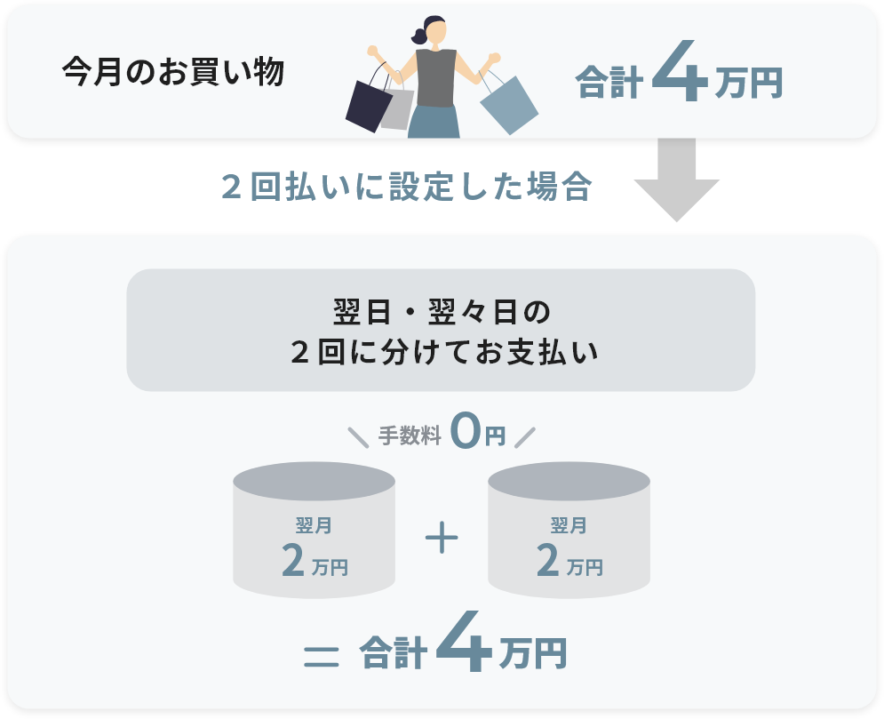 ご利用金額を2回の引き落とし日に分けて支払う方法です。